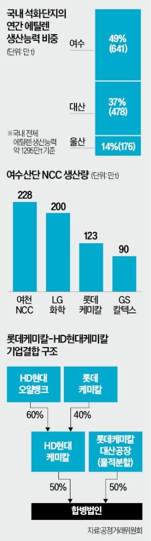 작년 말 시작된 롯데케미칼과 HD현대케미칼 통폐합 논의와 관련해 업계에선 회의적인 시각이 많았다. 나프타분해설비(NCC) 생산량 1위(국내외 총합)인 롯데케미칼이 규모가 훨씬 작은 HD현대케미칼에 공장 경영권 전반을 넘겨줄 가능성이 높지 않아서다. 양사가 26일 합의한 ‘대산 NCC 빅딜’이 석유화학 구조조정의 ‘신호탄’으로 받아들여진 이유다.