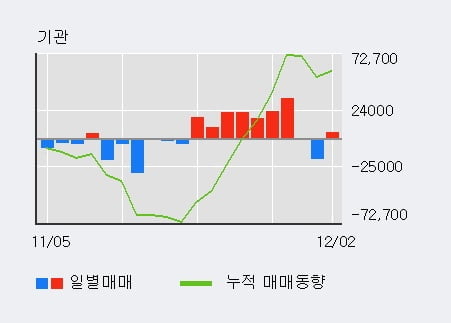 지난 한달을 기준으로 보면 외국인이 71.2만주를 순매수한 반면, 기관은 2.2만주를 순매도했고, 개인들도 67.8만주를 순매도한 것으로 집계됐다. 같은 기간 이 종목의 거래비중은 외국인과 개인이 각각 34.9%, 43.6%로 비중이 높다.