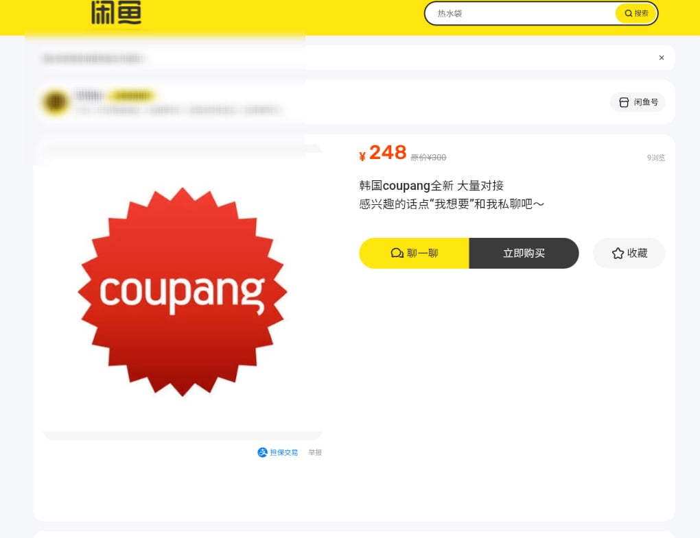 3일 정치권에 따르면 중국 최대 전자상거래 플랫폼 타오바오몰에는 현재도 '쿠팡 한국 계정'을 판매한다는 게시물이 상시적으로 올라오고 있다. 여러 판매자들은 메신저를 통해 즉시 연락 가능하다며, 비용과 발급 시간을 구체적으로 안내했다.
