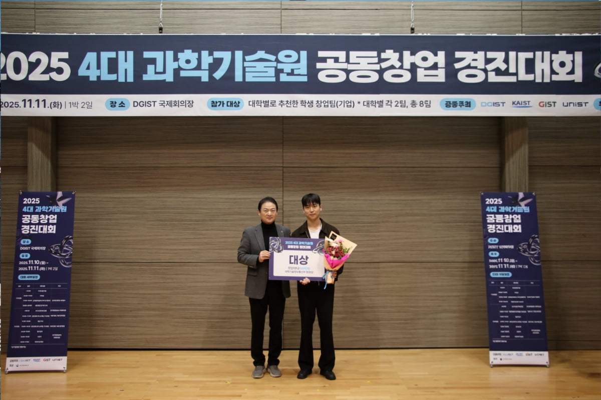 UGRP 프로그램에서 창업 아이템을 도출한 학부생 창업기업 ‘어퍼바운드(Upperbound)’는 「2025년 4대 과학기술원 공동창업 경진대회」에서 대상(과학기술정보통신부 장관상)을 수상했다. 이들은 ‘Gen AI 기반 소상공인 마케팅 솔루션’ 연구를 바탕으로, 가게명 입력만으로 16초 분량의 숏폼 영상을 자동 생성·유통하는 인공지능 서비스를 개발했다.