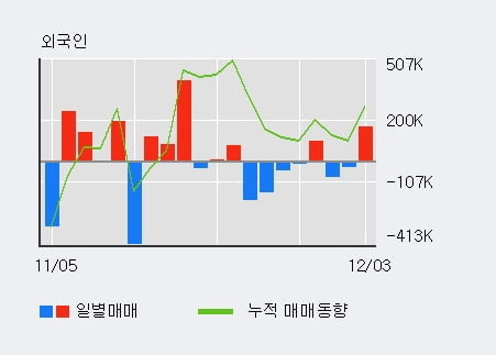 지난 한달을 기준으로 보면 외국인이 62.7만주를 순매수했고, 기관도 49.4만주를 순매수했다. 반면 개인들은 96.9만주를 순매도한 것으로 나타났다. 같은 기간 이 종목의 거래비중은 외국인과 개인이 각각 26.4%, 66.4%로 비중이 높다.