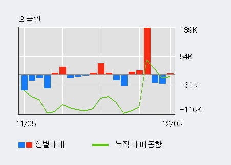 지난 한달을 기준으로 보면 외국인이 7.5만주를 순매수했고, 기관도 10.4만주를 순매수했다. 반면 개인들은 17.7만주를 순매도한 것으로 나타났다. 같은 기간 이 종목의 거래비중은 외국인과 개인이 각각 30.3%, 56.1%로 비중이 높다.