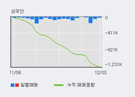 지난 한달을 기준으로 보면 기관이 146.9만주를 순매수한 반면, 외국인은 129.0만주를 순매도했고, 개인들도 24.5만주를 순매도했다. 같은 기간 이 종목의 거래 비중은 외국인과 개인이 각각 45.1%, 28.3%로 비중이 높다.