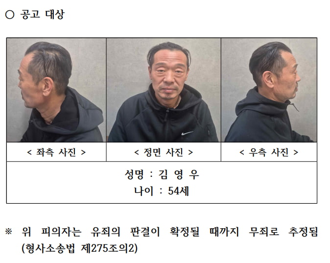 청주 실종 여성 살인범 김영우(54)의 신상이 4일 공개됐다. 김씨의 신상정보는 이날부터 30일간 충북경찰청 홈페이지에 게시된다.