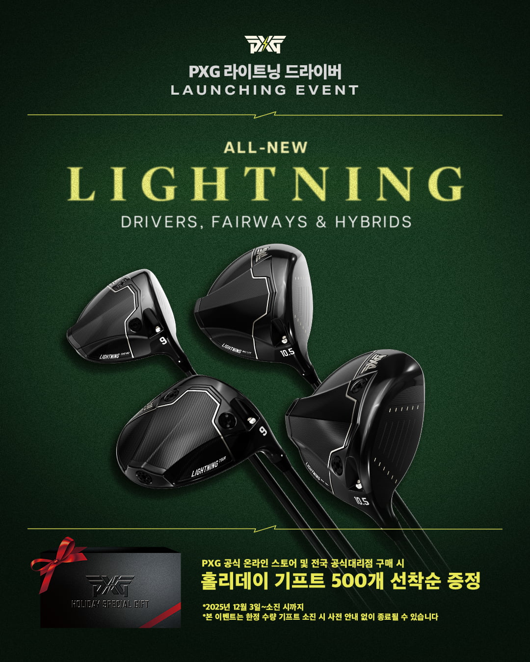카네는 신제품 PXG 라이트닝 드라이버 시리즈의 프리 론칭을 기념해 오는 31일까지 구매 고객에게 선착순 500명 한정으로 홀리데이 기프트 패키지를 증정한다. 패키지 구성은 PXG 넥워머와 PXG 이어머프 1세트다. 자세한 정보는 PXG 공식 인스타그램 및 온라인 스토어에서 확인할 수 있으며 제품은 PXG 도곡 직영점에서 피팅 및 시타 예약을 통해 체험해 볼 수 있다.
