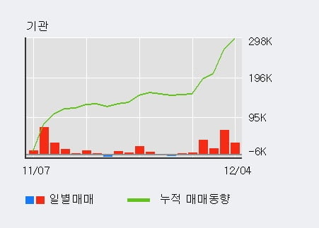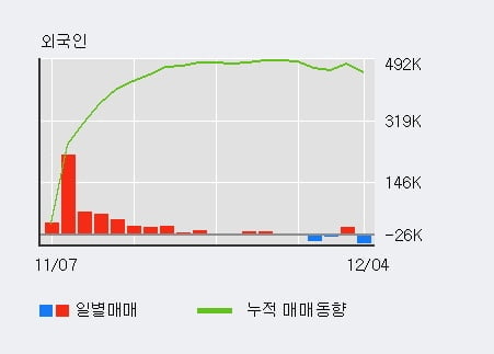 한편 기관은 이 종목에 대해서 최근 5일 연속 11.7만주 순매수를 하고 있다. 더욱이 전일 외국인이 대량 순매수를 하고 있어 투자자들의 관심이 집중되고 있다.