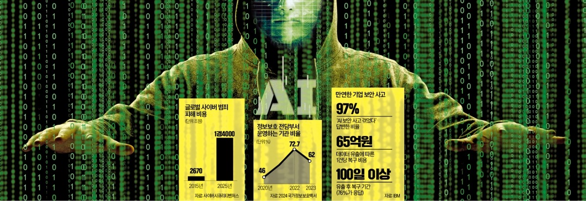이날 안랩의 차세대 위협 인텔리전스 플랫폼 티아이피(TIP) 보고서에 따르면 지난해 한국 기업이 랜섬웨어 그룹의 공격을 받은 사례는 56건으로 전년(16건) 대비 3.5배에 달했다. 이 같은 추세는 IBM이 8월 내놓은 보고서에도 뚜렷하다. 지난해 1년간 AI 해킹을 경험한 적 있냐는 질문에 응답자의 97%가 ‘그렇다’고 답했다. 한국에서 최근 들어 보안 사고가 자주 발생하는 것과 관련해 정수환 과학기술정보통신부 산하 AI보안연구센터장은 “그동안 감춰져 있던 보안 구멍을 AI가 찾아낸 것일 뿐”이라고 지적했다.