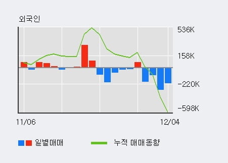 지난 한달을 기준으로 보면 기관이 127.2만주를 순매수한 반면, 외국인은 50.6만주를 순매도했고, 개인들도 82.7만주를 순매도했다. 같은 기간 이 종목의 거래비중은 외국인과 개인이 각각 33.9%, 48.4%로 비중이 높다.