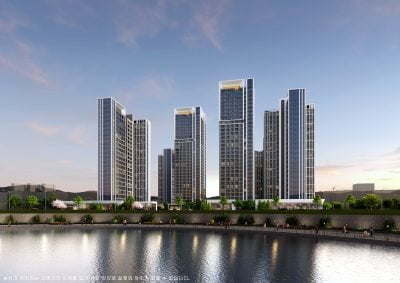 특히 콘크리트 벽체에 유리 패널을 덧대어 화려한 외관을 연출하면서도, 아파트의 구조적 장점을 살린 ‘커튼월룩’을 적용해 랜드마크로서의 상징성을 강화했다.
