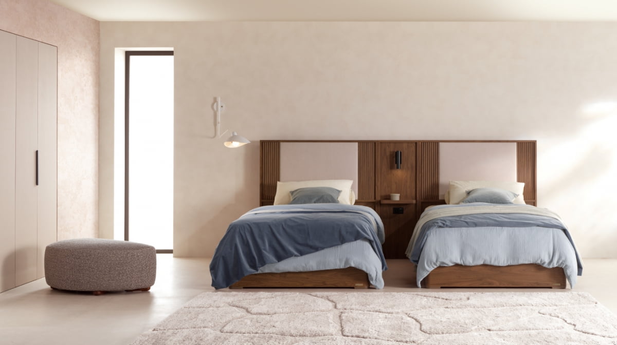 신제품의 가장 큰 특징은 유연한 공간 활용으로, 프레임과 사이드판넬을 조합해 두 개의 슈퍼싱글(SS) 프레임을 트윈 구성으로 사용할 수 있다. 이를 통해 독립적인 수면 공간을 유지하면서도 침실에 통일감을 부여하며, 다양한 라이프스타일에 맞춰 효율적인 공간 연출이 가능하다.