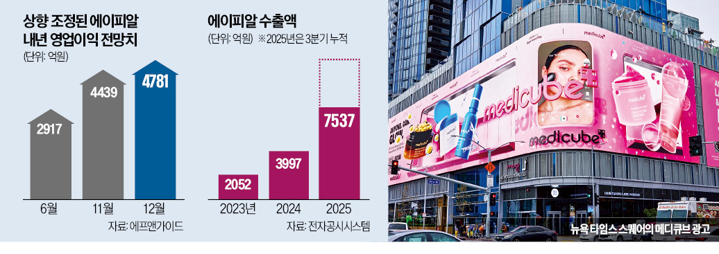 증권사들은 뒤늦게 에이피알의 실적 전망치와 목표주가를 올리고 있다. 에이피알의 4분기 영업이익 전망치는 지난 9월 952억원이었지만, 12월 초 1091억원으로 상향 조정됐다. 4분기 수출액은 4000억원을 넘어설 것으로 뷰티업계는 내다보고 있다. 3분기까지 수출액이 7537억원으로 올해 수출액은 1조1500억원에 달할 전망이다. 연말 선물 수요 등으로 4분기는 뷰티업계 최고 성수기다. 4분기 성과는 이듬해 실적의 바로미터가 된다.