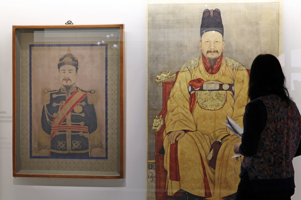 취재진들이 8일 서울 중구 덕수궁 돈덕전에서 열린 ‘쿠키런: 사라진 국가유산을 찾아서’ 특별전 언론공개회에서 대원수 예복을 입은 고종 초상화를 살펴보고 있다. 국가유산의 날을 맞아 개최된 이번 전시는 대중에게 친숙한 모바일 게임 ‘쿠키런’을 활용해 국가유산의 가치와 의미를 쉽고 재미있게 전달하기 위해 마련됐다. 12월 9일부터 내년 3월 1일까지 열린다. 관련뉴스