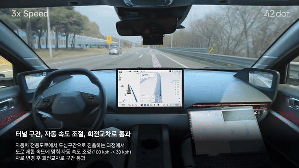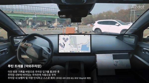 포티투닷이 올린 영상에는 현대차 아이오닉6 기반의 시험차가 국내 도심 터널·교차로 등을 주행하고 자동차 전용도로에서 시속 100㎞까지 달리는 모습 등이 담겼다. 시험 차량은 신호등을 인식하면서 제한 속도에 맞춰 가속 및 감속했다. 차선을 자연스럽게 변경하면서 회전교차로를 통과하는 모습도 담겼다. 이후 주차장에서는 주차장 내 공간을 탐색한 뒤 주차장에 진입한 뒤에는 보행자와 차량을 인식하고 회피했고 비어있는 칸에 스스로 주차했다.