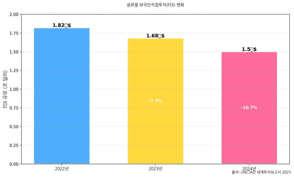 최근 글로벌 조세 환경의 변화는 글로벌 자금 흐름도 바꿔놓았다. 유엔무역개발회의(UNCTAD)의 '세계 투자 보고서 2025'에 따르면 2024년 글로벌 외국인직접투자(FDI)는 전년 대비 11% 감소한 1조 5000억 달러에 그쳤다. 고금리와 지정학적 불확실성, 조세 혜택 축소 등이 투자 심리를 억누른 탓이다. 특히 유럽으로 향하는 FDI는 58% 급감했다.반면 한국은 이런 흐름에서 비켜나 있다는 분석도 있다. 2024년 한국의 FDI 신고액은 345억 달러로 전년 대비 5.7% 증가하며 2년 연속 역대 최고치를 경신했다. 특히 제조업 FDI 유입은 145억 달러로 전년보다 21.6% 급증했다. 반도체, 바이오 등 첨단 산업이 상승세를 주도했다. 이는 글로벌 기업과 투자자의 관심이 반도체·배터리 등 산업 생태계가 확실한 곳으로 이동했다는 뜻이다.