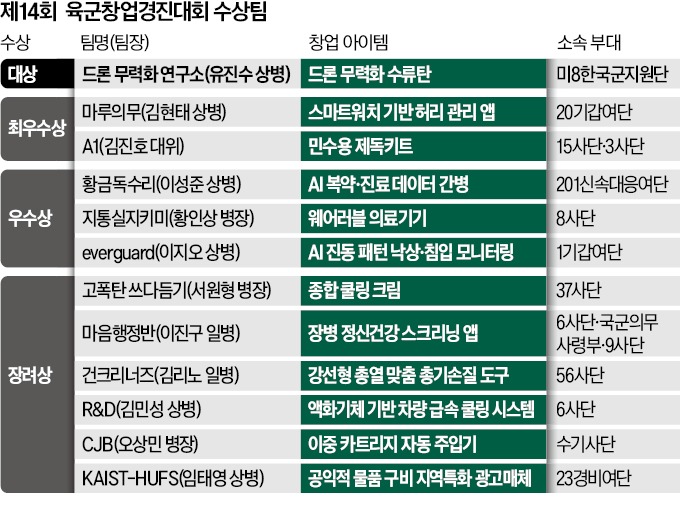 대회 출신 스타트업에는 ‘마시는 수액’으로 유명한 링티, 불가사리를 이용해 친환경 제설제를 개발한 스타스테크 등이 포함돼 있다. 김철수 실장은 “군이라는 특수한 환경 속에서 문제를 발견하고 실현 가능한 해결책으로 발전시킨 참가 장병들의 창의성과 실행 의지는 삶의 강력한 경쟁력이자 든든한 자산이 될 것”이라고 말했다.