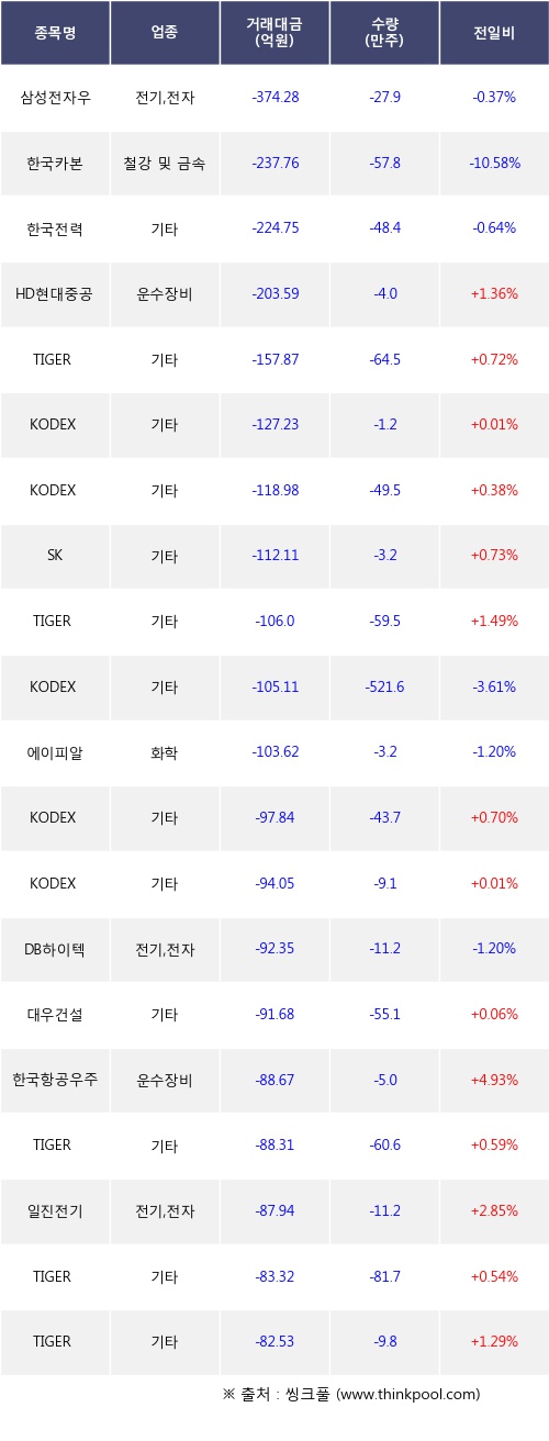 [03월25일]거래소 기관 순매도 상위 종목