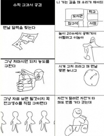 또한 곱셈, 나눗셈을 헷갈려 원답을 도출해야되는 경우나 높이 20m에서 공을 튀겨 반사력으로 올라온 높이를 구하라는 등 다소 귀찮게 구는 문제에 불만을 제기해 공감을 샀다.