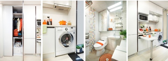 여기다 LED TV 모니터겸용ㆍ침대ㆍ상부장ㆍ책상 및 의자ㆍTV받침대 겸용 수납장ㆍ빨래건조도어행거ㆍ전자레인지ㆍ전기밥솥까지 제공해 이 오피스텔은 진정한 콤팩트 하우스(Compact House)의 진수를 보여주고 있다는 평가를 받고 있다.