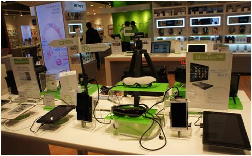 아큐픽스는 지난 7일 SK플래닛과 HMD 판매와 유통 업무 협약을 맺고 공동마케팅 일환으로 24일부터 SK플래닛 대학로점을 통해 마이버드의 체험 프로모션과 사전예약판매를 시작했습니다.