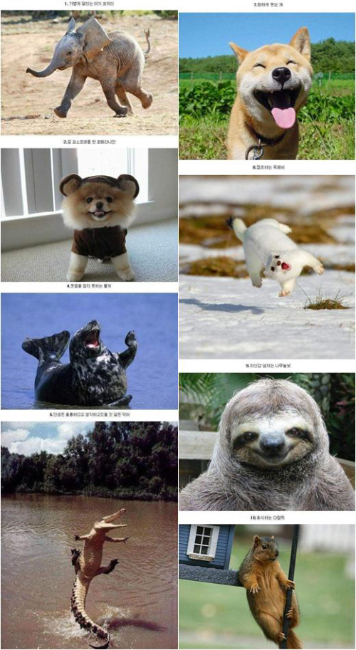 최근 한 온라인 커뮤니티 게시판에 `보기만해도 기분 좋아지는 동물들`이라는 제목으로 여러 장의 사진이 게재됐다.