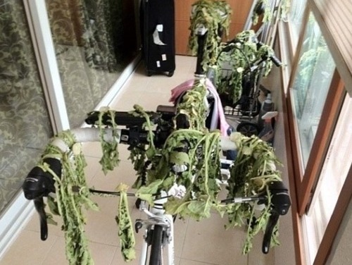 베란다에는 자전거가 고스란히 놓여 있지만 자전거가 온통 나물로 뒤덮여있어 형체조차 보이지 않는다. 이에 네티즌들은 자전거인지 나물받침대인지 헷갈린다며 박장대소 하고 있다. 특히 한 네티즌은 "자전거 타지마세요. 나물에 양보하세요"라고 재치있는 댓글을 남기기도 했다.