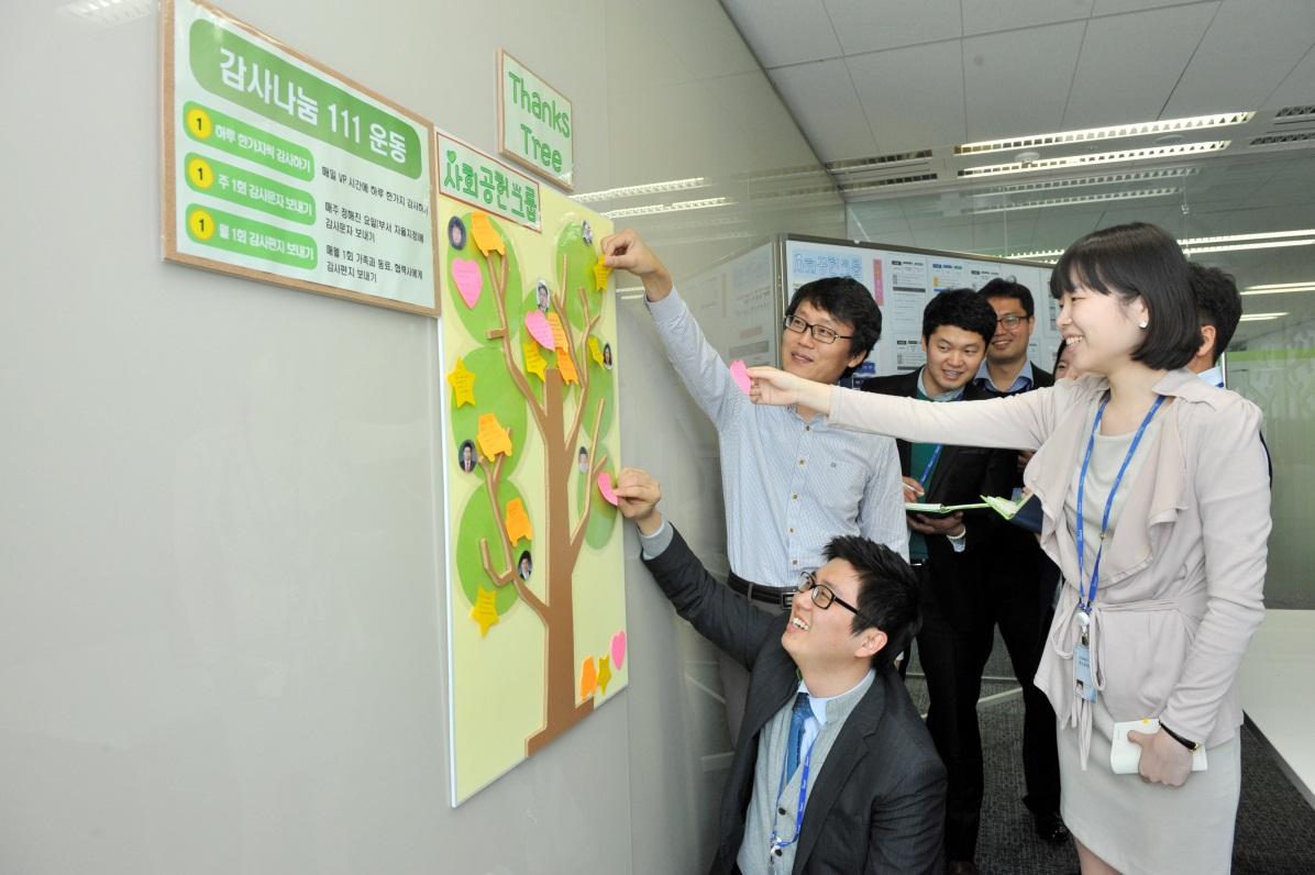 실례로 포스코건설은 매일 오전 혁신활동인 비주얼플래닝을 통해 동료 직원들과 감사내용을 공유하는 한편 지역사회에 대한 감사의 마음을 전하기 위해 본사와 지역 현장직원들이 백일홍 꽃씨를 공공장소에 심고, 가꾸는 활동을 펼치고 있습니다.