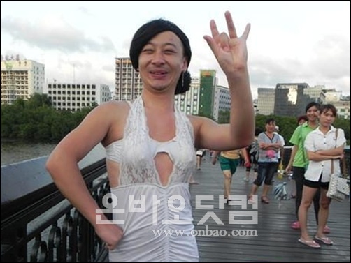 또 다른 네티즌은 다산로에 나타난 여장 남자 사진을 공개하고 "여장 남자는 자신이 TV 프로그램의 오락 프로그램 촬영을 위해 이렇게 분장하고 나왔다"며 "보는 사람마다 3위안(540원)씩 딸라고 요구했다"고 말했다.