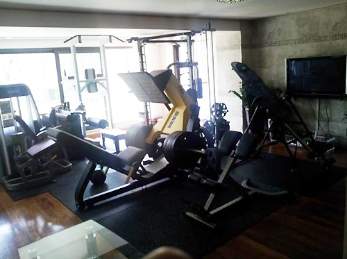 게재된 사진 속의 박진영의 거실에는 다양한 운동기구가 자리잡고 있다. 한두개가 아닌데다가 다른 특별한 인테리어가 없어 거실은 헬스장을 방불케한다.