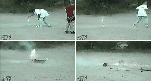 공개된 사진은 같은 이름의 동영상을 캡처한 것으로 영상 속 한 아이는 다연발 폭죽을 땅에 꽂은 채 멀리 도망가기 시작했다. 그러나 아이가 키우는 것으로 보이는 강아지가 폭죽 근처로 다가가 폭죽을 다시 아이에게 가져다 주려고 하는 모습이다.
