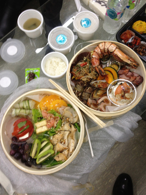 사진에는 왕새우부터 시작해 고기와 야채, 과일까지 푸짐하게 차려진 2단 도시락이 노출됐다. 국물도 따로 준비될 정도로 진수성찬의 메뉴를 자랑했다.