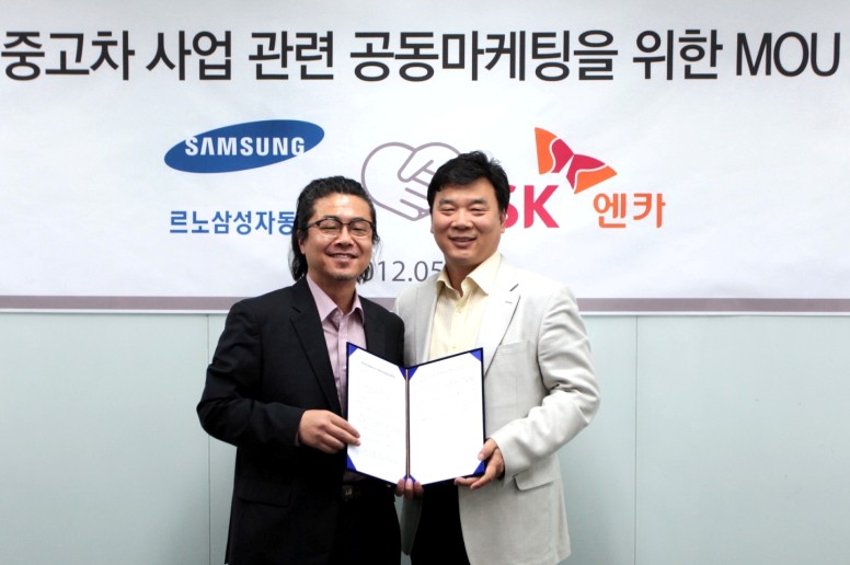 르노삼성자동차가 지난 17일 SK엔카 영등포 사옥에서 르노삼성자동차 이인태 상무와 SK엔카 박성철 대표이사 등 양사 관계자가 참석한 가운데 전기자동차 중고차 사업 모델 개발과 공동 마케팅을 위한 양해각서를 체결했다고 밝혔습니다.