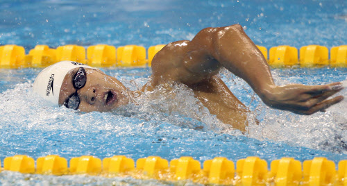 한국 수영의 간판 박태환이 런던올림픽을 2개월여 앞두고 대회 2연패에 청신호를 밝혔다.