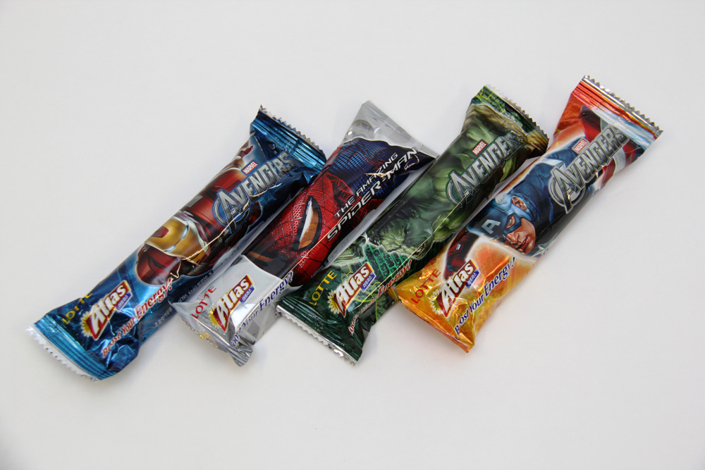 롯데제과가 자사 초코바 `아트라스`에 영화 `어벤져스`와 `스파이더맨` 캘릭터를 활용한 제품 `아트라스 어벤져스`와 `스파이더맨`을 출시했습니다.