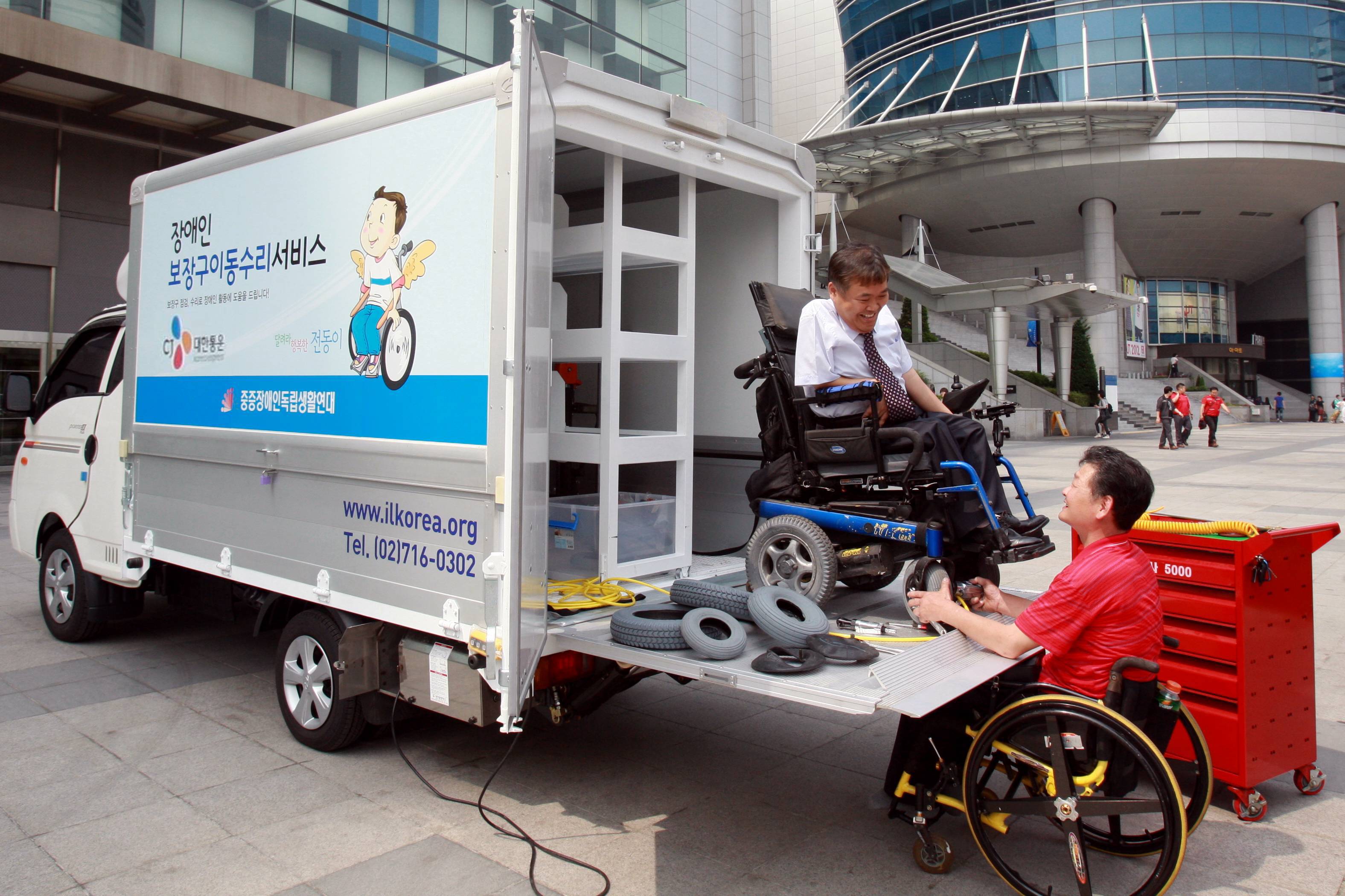 CJ대한통운이 중증지체장애인의 전동휠체어 이동 수리 지원 프로그램을 마련했습니다.