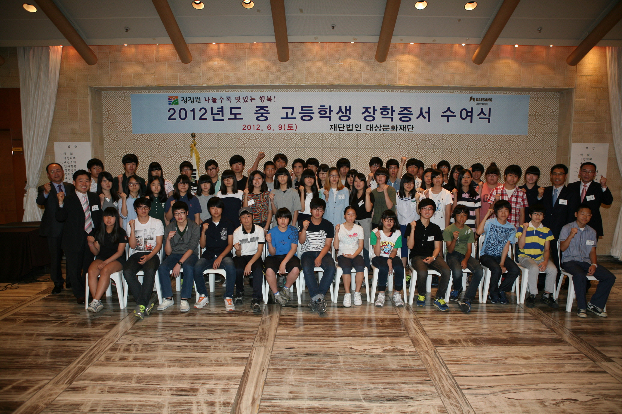 대상그룹 공익법인 대상문화재단(이사장 임창욱)이 상암월드컵경기장에서 `2012년도 중고등학생 대상 장학증서 수여식`을 갖고 전국에서 선발된 중·고등학생 장학생 500명 중 수도권 지역 187명의 장학생에게 장학증서를 수여했습니다.