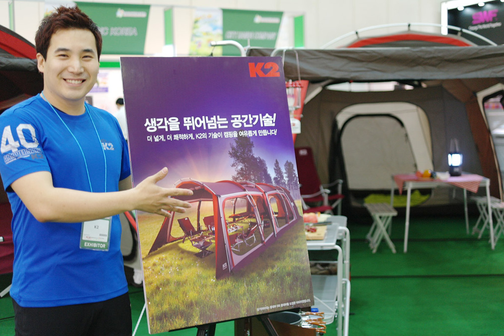 K2는 이번 전시회 기간 동안 초보 캠퍼부터 캠핑 마니아까지 다양한 고객의 니즈를 충족시킬 수 있는 다양한 용품을 선보이고, 캠핑 인구 100만명 시대를 맞는 국내 캠핑?아웃도어 시장 공략에 적극적으로 나선다는 계획 입니다.
