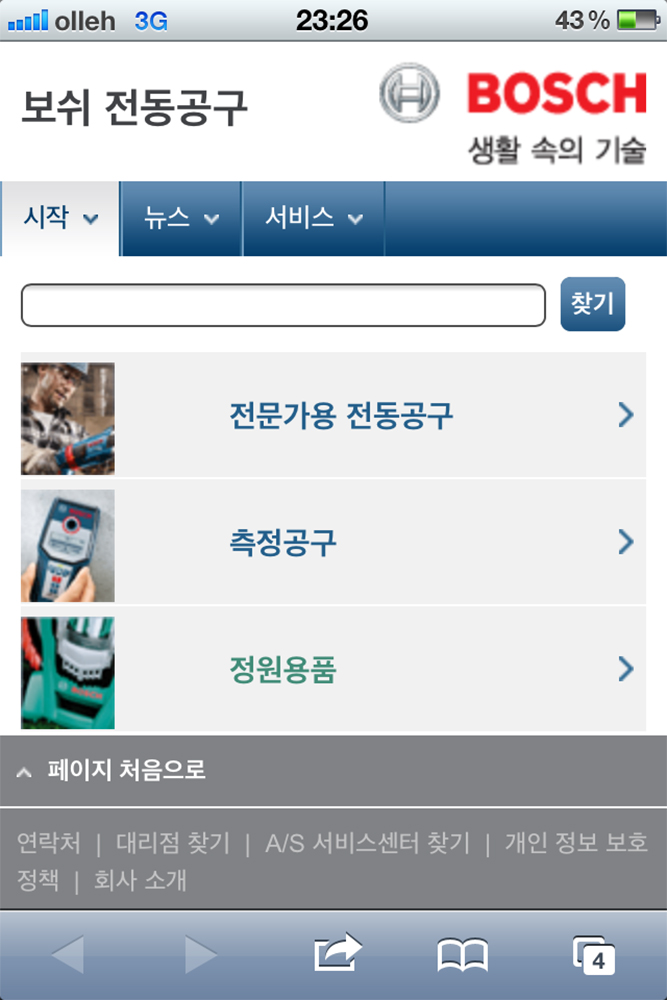 한국로버트보쉬 전동공구사업부가 국내 최초로 자사 전동공구에 대한 정보를 얻을 수 있는 ‘보쉬 전동공구 모바일 웹사이트’ 서비스를 시작했습니다.