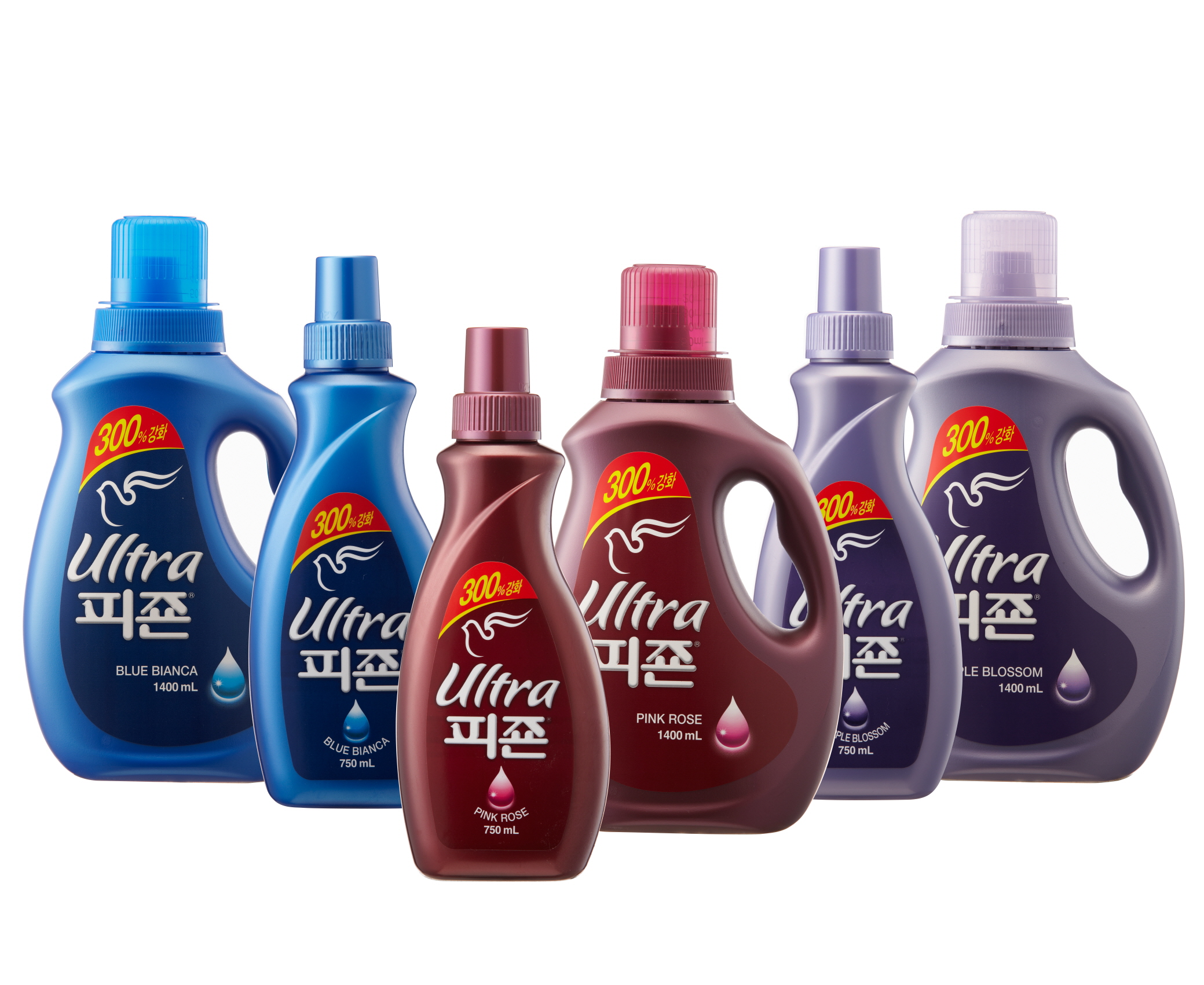‘울트라 피죤’은 화사하고 로맨틱한 핑크로즈, 상쾌하고 깨끗한 블루비앙카, 벚꽃의 은은한 향이 특징인 퍼플 블라섬 등 3가지 향이 있으며 750 ml, 1400ml 2가지 용기로 소비자들을 찾아갑니다.