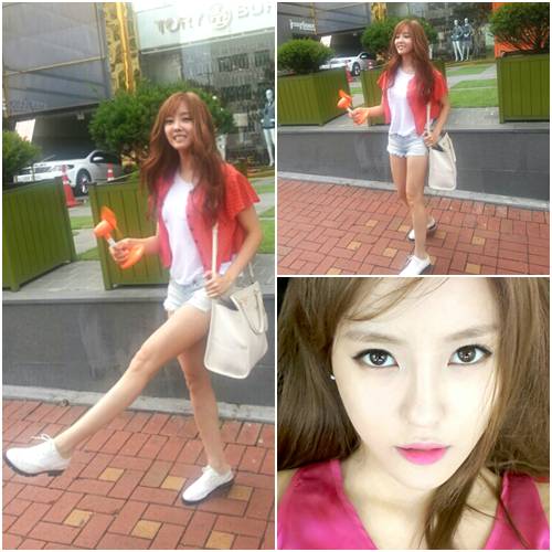 효민 뮤뱅 출근 사진 속 효민은 흰 티셔츠에 오랜지빛 카디건을 걸치고 핫팬츠에 운동화를 신은 모습이다. 날이 더운지 한 손에는 미니선풍기를 들고 이동하고 있다. 무엇보다 효민의 길게 쭉 뻗은 다리는 보는 이들의 감탄을 자아내고 있다.