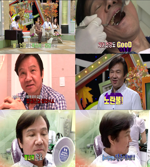 종합적인 구강 점검을 맡은 올리브 닥터 치과 전문의 강정호는 “치아뼈나 잇몸의 연령대는 30~40대의 건강상태”라고 진단했다. 하지만 “노화 현상으로 치아변색을 비롯해 잔금이 가있고 마모가 심한편이다. 미백 치료와 치아 성형을 추천한다”고 권하였다.