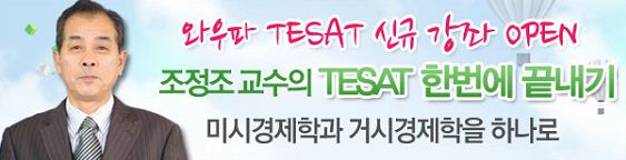 TESAT 1+1 패키지 상품은 ‘TESAT 완벽대비이론서’ 를 펴낸 조정조 교수의 미시 경제학 강의와 거시 경제학 강의로 구성되어 있다.