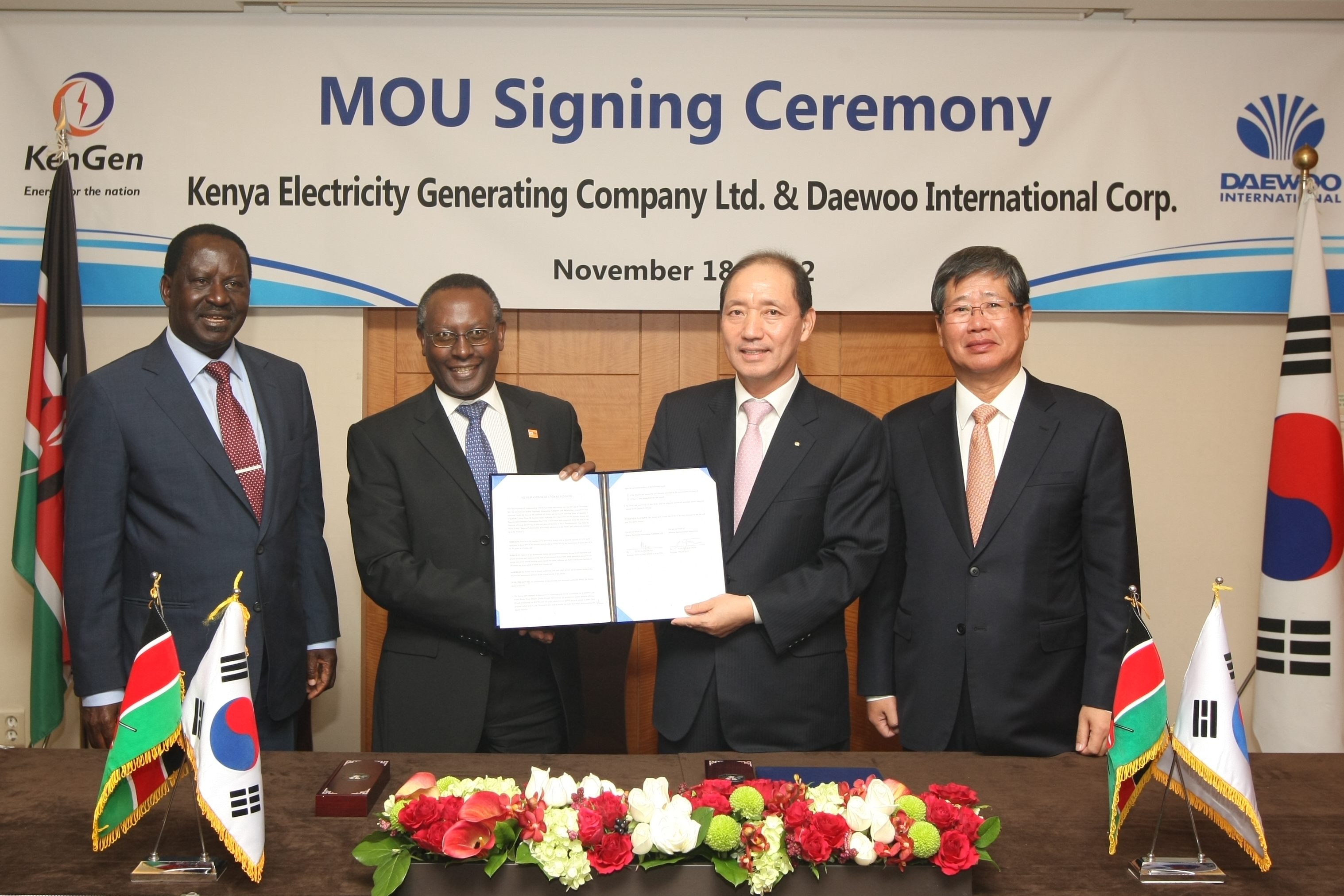 대우인터내셔널이 케냐 국영전력회사 켄젠과 23억 달러 규모의 발전사업 추진을 위한 양해각서(MOU)를 체결했습니다.