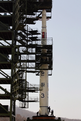3일 정부의 고위 소식통에 따르면 북한이 장거리 로켓을 발사하기 위해 평안북도 철산군 동창리에 위치한 발사대에 1단 로켓 추진체를 장착한 정황이 포착됐다.