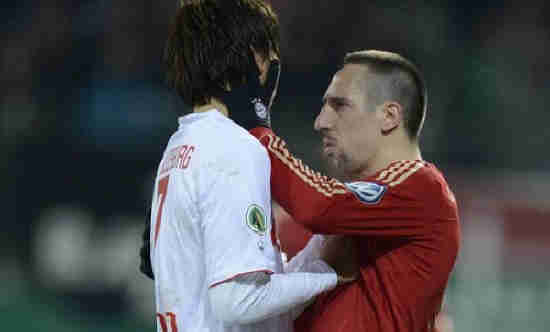 독일축구협회(DFB) 포칼컵 경기 중 구자철(23, 아우크스부르크)과 다투다 뺨을 때린 프랑크 리베리(바이에른 뮌헨)가 협회로부터 출전정지 징계를 받았다.