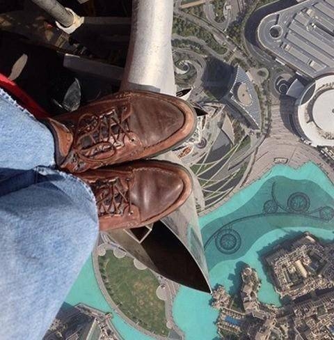 맥널리는 아랍에미리트 두바이에 있는 세계 최고층 빌딩 ‘부루즈 칼리파’에서 이 사진을 찍은 것으로 알려졌다. 그는 부루즈 칼리파 꼭대기에 있는 투명 바닥 위에 서서 820m 아래 세상을 카메라에 담았다.