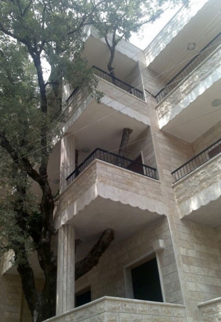사진 속 건물은 층마다 구멍을 뚫어 나무가 자연스럽게 자랄 수 있도록 배려하고 있다.