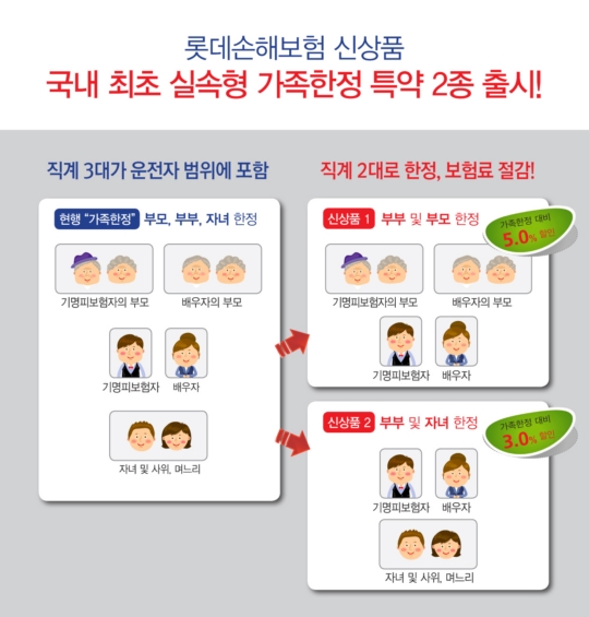 롯데손해보험이 `부부 및 부모 한정 특약`과 `부부 및 자녀 한정 특약` 상품을 출시했습니다.