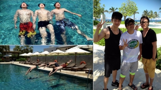 공개된 사진 속 세 사람은 장난 끼 가득한 표정으로 수영장에서 즐거운 한때를 보내고 있다. 함께 물속에 누워 여유롭게 물살을 즐기는가 하면 다이빙 하고 있는 모습을 순간 포착한 사진은 마치 세 마리의 돌고래를 연상시켜 깨알 웃음을 주기도.