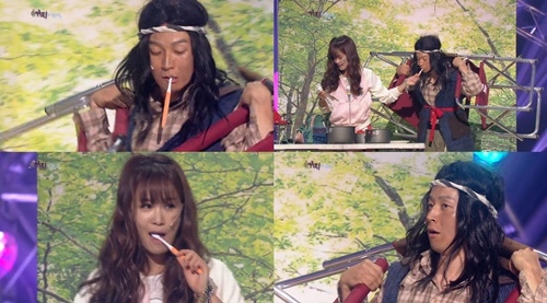 지난 26일 방송된 KBS2TV `개그콘서트` 거지의 품격 코너에서는 캠핑을 떠난 김지민과 허경환의 연출됐다.