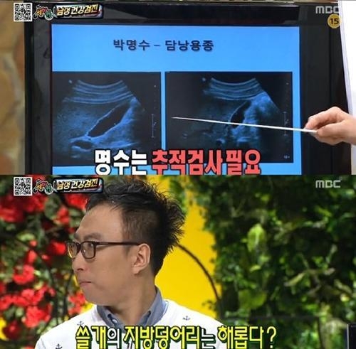 이날 박명수는 복부 초음파 결과 다수 담낭용종이 발견돼 보는 이들을 놀라게 했다. 박명수에게 담낭용종이 많은 이유는 평소 잦은 과음으로 중성지방 치가 상승했기 때문이다.